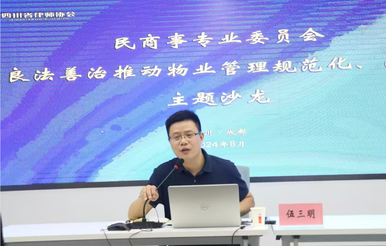 作为司法实践参与者,伍三明频繁深入司法系统进行专业培训,为法院、司法部门、律师协会授课。如为四川省高级人民法院组织的“2025年全省法院民商事审判监督业务培训班”专题授课,作“物业纠纷案件焦点难点问题的梳理与探讨”主题分享,并两次参加四川省高级人民法院组织的物业纠纷典型案例新闻发布会;为四川天府新区法院等组织的物业纠纷调解培训会授课;为成都市武侯区法院召开的物业纠纷源头治理工作推进会,作物业法规授课;为绵阳市司法局举办法治建设理论与实践业务培训班、成都市龙泉驿区司法局组织法律明白人培训班授课;此外,在四川省律师协会、成都市律师协会主办的“物业实务法律问题分享沙龙“等作主题分享。